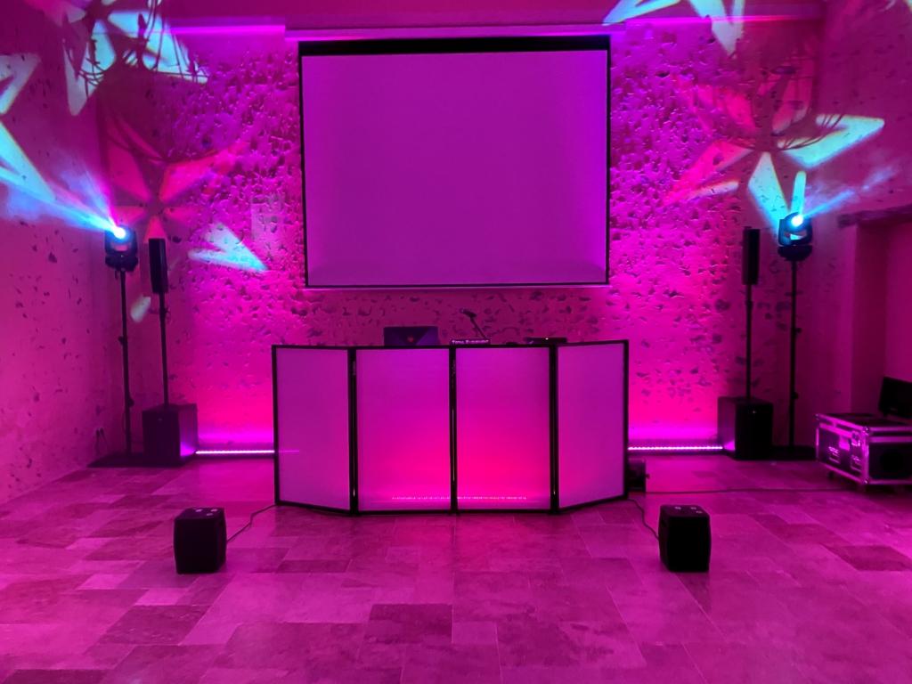 Nous mettons la qualité de ce matériel ainsi que notre expérience au service de votre évènement avec une programmation sur mesure de nos lumières pour chaque moment de la soirée ainsi qu’un son dosé et de qualité.
