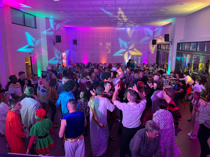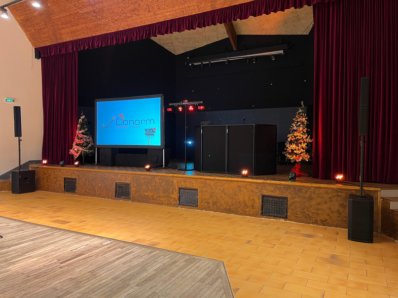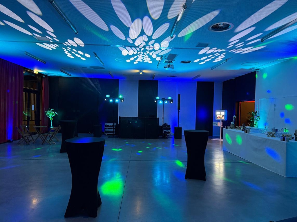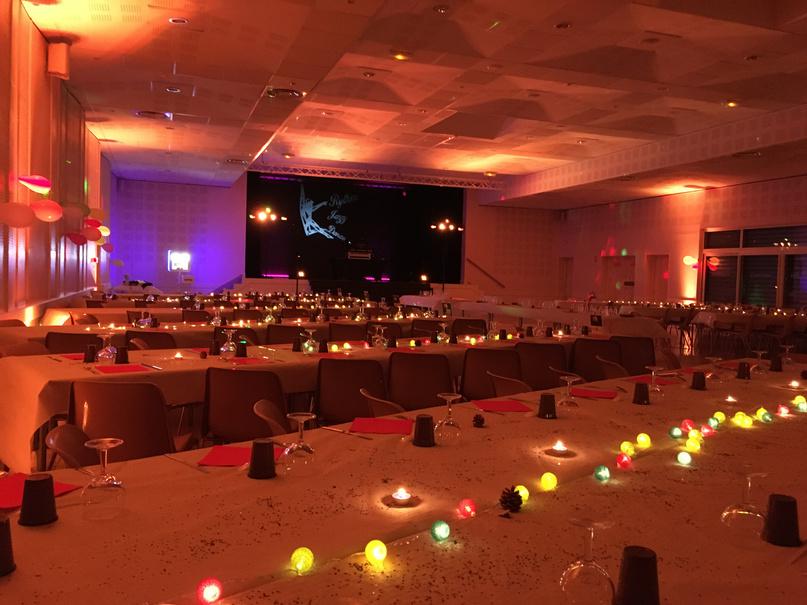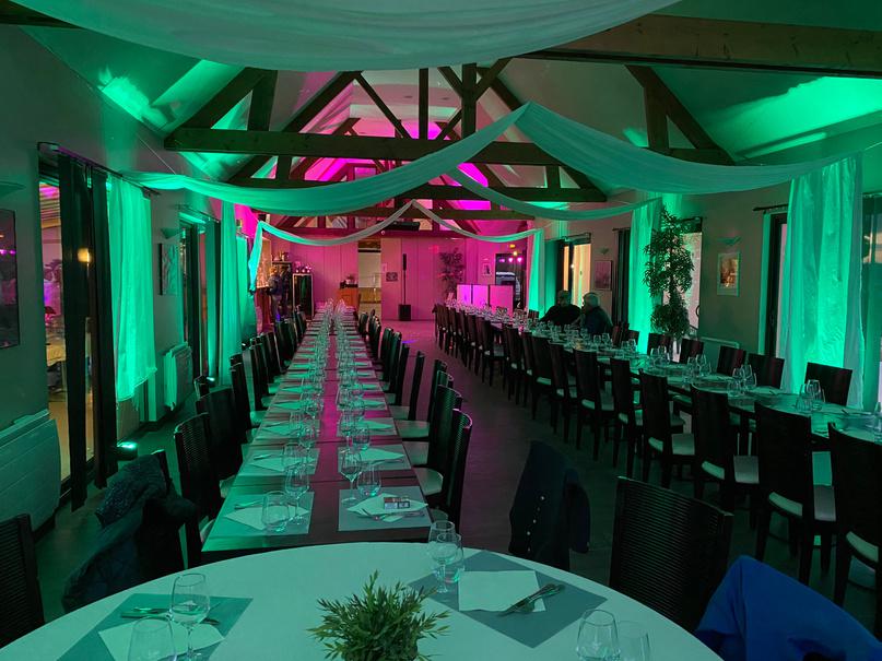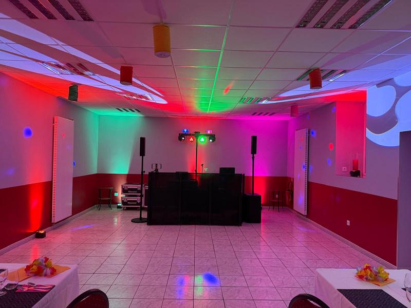 Plusieurs « programmes » lumineux avec des couleurs et des dynamiques différentes permettront de mettre en valeur les différents moments de la soirée (éclairage fixe vers la salle et le plafond pour les moments « repas », d’autres vers la piste de danse pour les interventions, les animations, etc… et enfin d’autres programmes plus dynamiques pour la partie dansante)