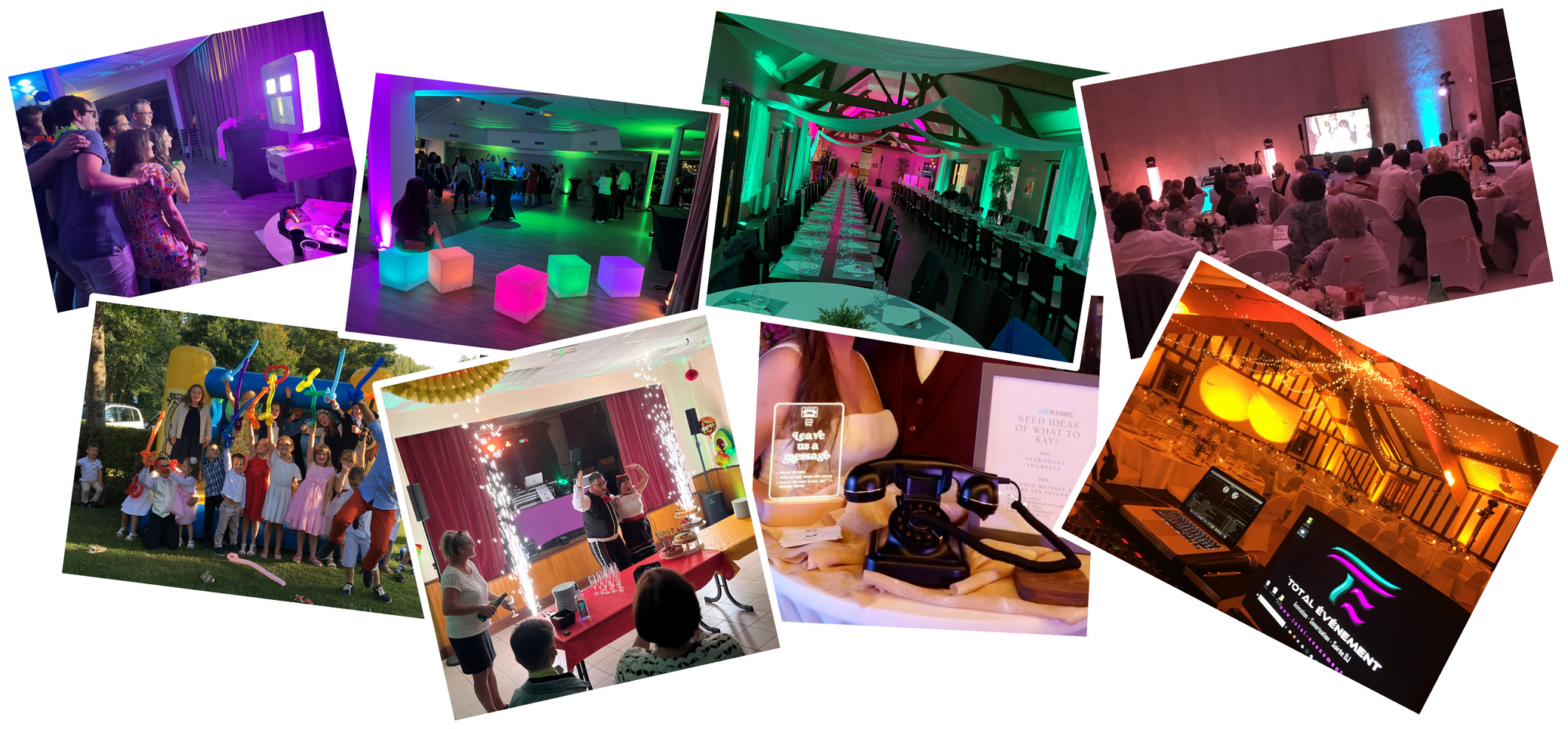 Exemple: la piste est tamisée en bleu pour l’ouverture de la piste de danse, toute la salle devient bleue. Nous faisons clignoter les lumières lors du gâteau, toute la salle clignote. Et ainsi de suite…