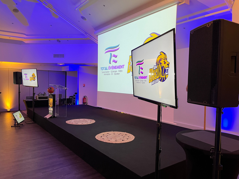 - 2 TV 140cm en symétrique pour un effet sobre et efficace ! Installées toute la soirée avec par exemple défilement de photos, un logo avec vos prénoms, etc…